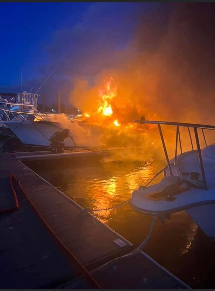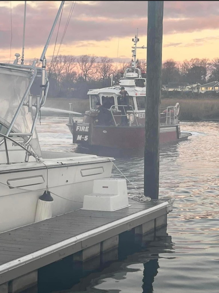 KEYPORT: This Morning at approximately 6am the Keyport Fire Department was dispatched to the area of Browns Point Marina for a report of a boat on fire. Chief 69 arrived and found 1 vessel well involved with exposure to the dock as well as other vessels. Chief 69 would transmit a box alarm bringing in additional units to help extinguish the fire. Squad 76 arrived and stretched approximately 750 ft to the fire and would go to work extinguishing the blaze and protecting surrounding vessels. Chief 69 would also request Perth Amboy Fire Department for their Marine Unit to assist in fighting the fire. We would like to thank Union Beach Fire Co. #1 Holmdel Fire & Rescue Company #2 Cliffwood Volunteer Fire Company #1 Station 63-2 and Washington Engine Co. for their help establishing a water supply and providing Man power. We would also like to thank North Centerville Vol. Fire Co. No. 1 and Morganville Fire Department for their assistance with covering the borough while units were operating at the fire. The fire is currently under investigation by the Monmouth County Fire Marshal’s office.