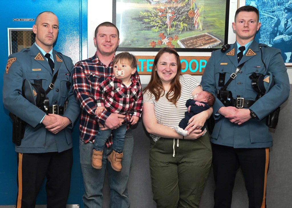 Earlier this month, at approximately 4:27 a.m. on a Saturday morning, a man and a woman arrived at Troop “B” Hope Station looking for assistance, which is nothing out of the ordinary. What the troopers did not expect was to deliver a baby. Academy training teaches troopers to expect the unexpected, which is why the troopers were able to immediately provide assistance to the very expectant mother. We all love a happy ending and what better way to celebrate than with a reunion with the family, who stopped by Hope Station to thank the troopers. Welcome to the world, baby Cole!