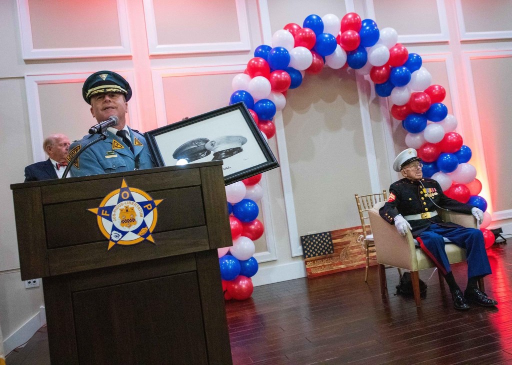 Roland was surrounded by loved ones as well as members of the U.S. Marine Corps, American Bombshells Patriotic Services and the Marine Forces Reserve Band from New Orleans. The birthday bash also benefited a charity close to Roland’s heart, Families Behind the Badge Children’s Foundation.