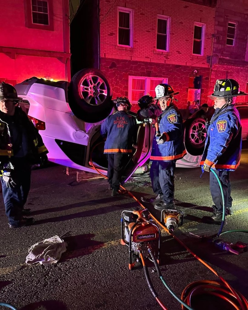 This evening, Tour #3 responded to 541 East Jersey St. for an overturned vehicle with entrapment. Companies on the response were E3, L2, R1, EMS6, DC3