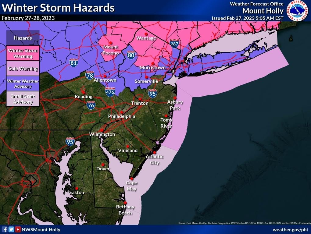 Winter Storm Warnings are now in effect for areas mainly near and north of Interstate 80. Travel could become very difficult there tonight through Tuesday morning, due to heavy snow. See the Warning & Advisory text & additional graphics here: https://www.weathertight.gov/phi/winter