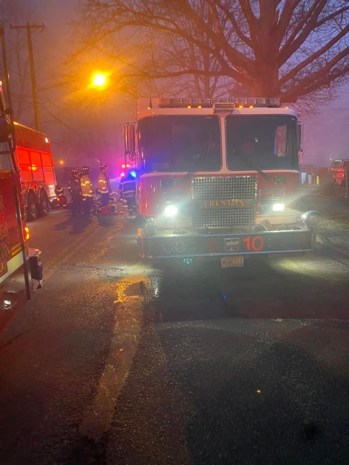 TRENTON: The three alarm blaze that occurred overnight on Greenwood Avenue has been declared under control. A firefighter fell through the second floor fall. We are waiting for a report on his condition.