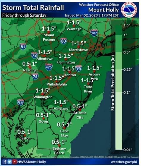 Residents should expect to see the following weather conditions on Friday 3/3/23 thru Saturday 3/4/23;