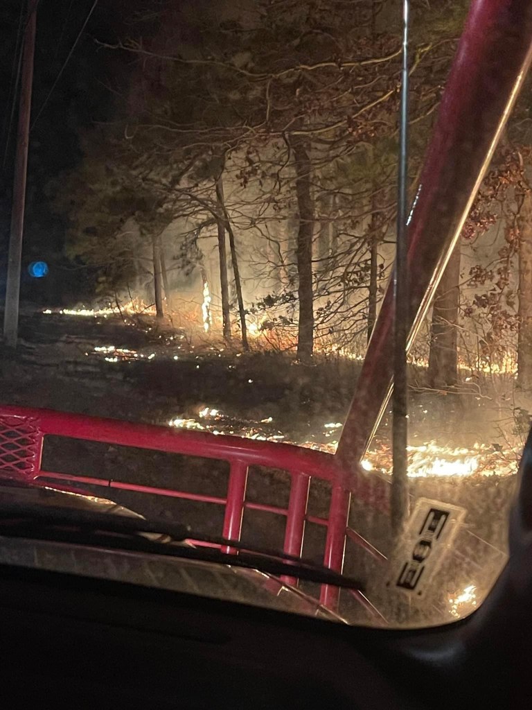 At 7:13pm Station 33 and the NJFFS were dispatched to a reported brush fire on Rt 539 (in the area of mile marker 27.5). Chief 3300, Asst Chief 3310, Brush 3339, Brush 3319, Tanker 3318, Utility 3327, and Utility 3317 responded in. An active fire was confirmed by first arriving units. Despite conditions including wind gusts (up to 20mph), crews were able to contain the fire to about 25 acres.