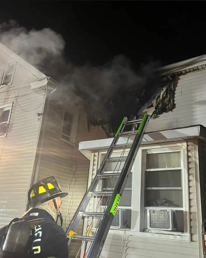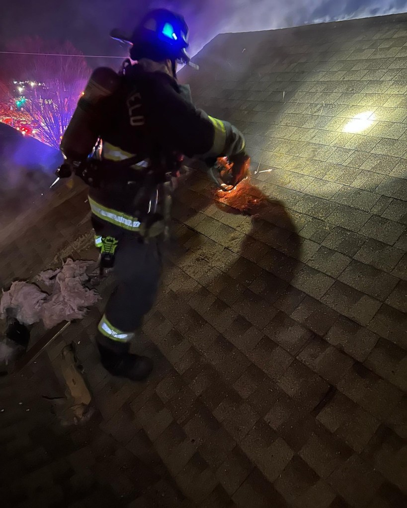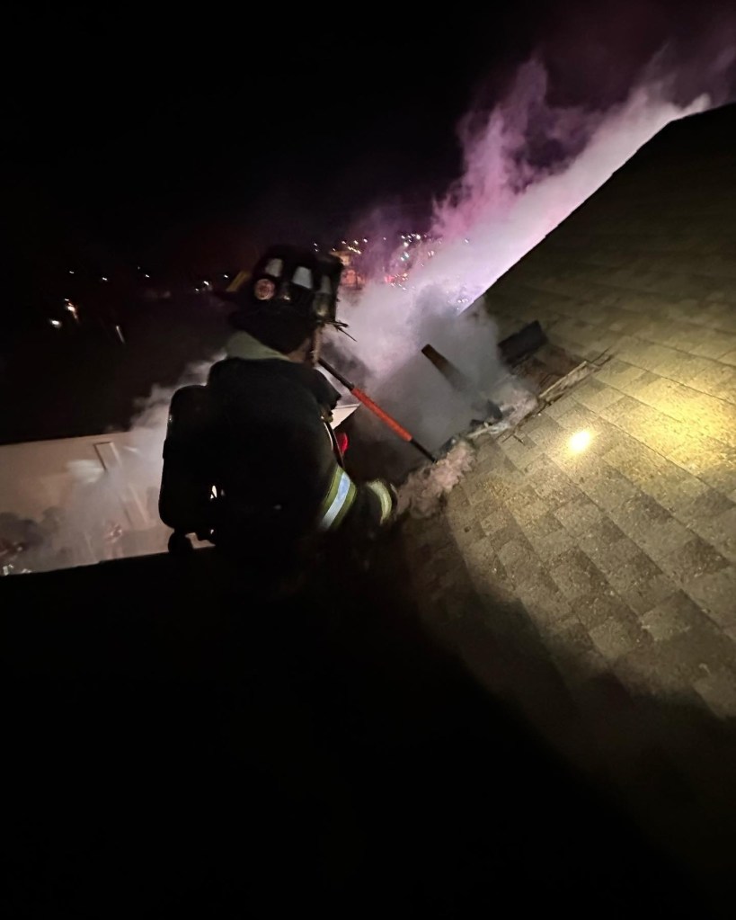 WRIGHTSTOWN: (Burlington County). This morning, Shop 26 was dispatched to a structure fire in Wrightstown Borough. Upon arrival the crew of 2611 was ordered to the roof to perform vertical ventilation. Courtesy Burlington County IAFF 3091.
