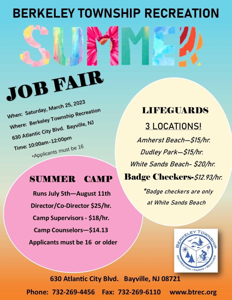 BERKELEY: Mayor Carmen Amato and Berkeley Recreation are pleased to announce employment opportunities for this coming Summer season. Please download an employment application here