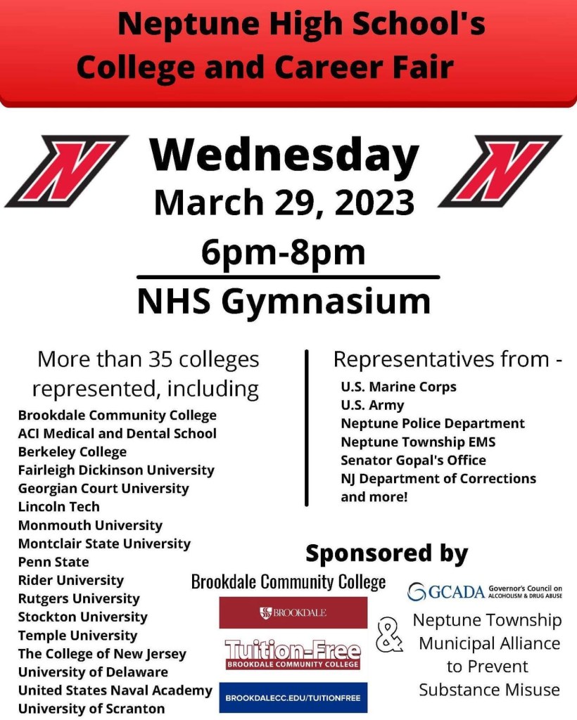 NEPTUNE: Next week, the Neptune Township Police Department’s Recruitment Team will be attending job fairs at Neptune Township High School and Brookdale Community College!