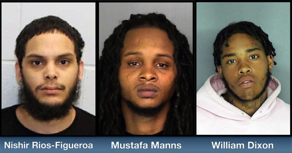 The New Jersey State Police have charged Mustafa Manns, 28, William Dixon, 24, and Nishir Rios-Figueroa, 30, all of Newark, N.J., with murder, kidnapping, and other offenses for allegedly shooting and killing Quadree Burch, 27, of Newark, and dumping his body near a wooded area off Interstate 80 in Allamuchy Township, Warren County.