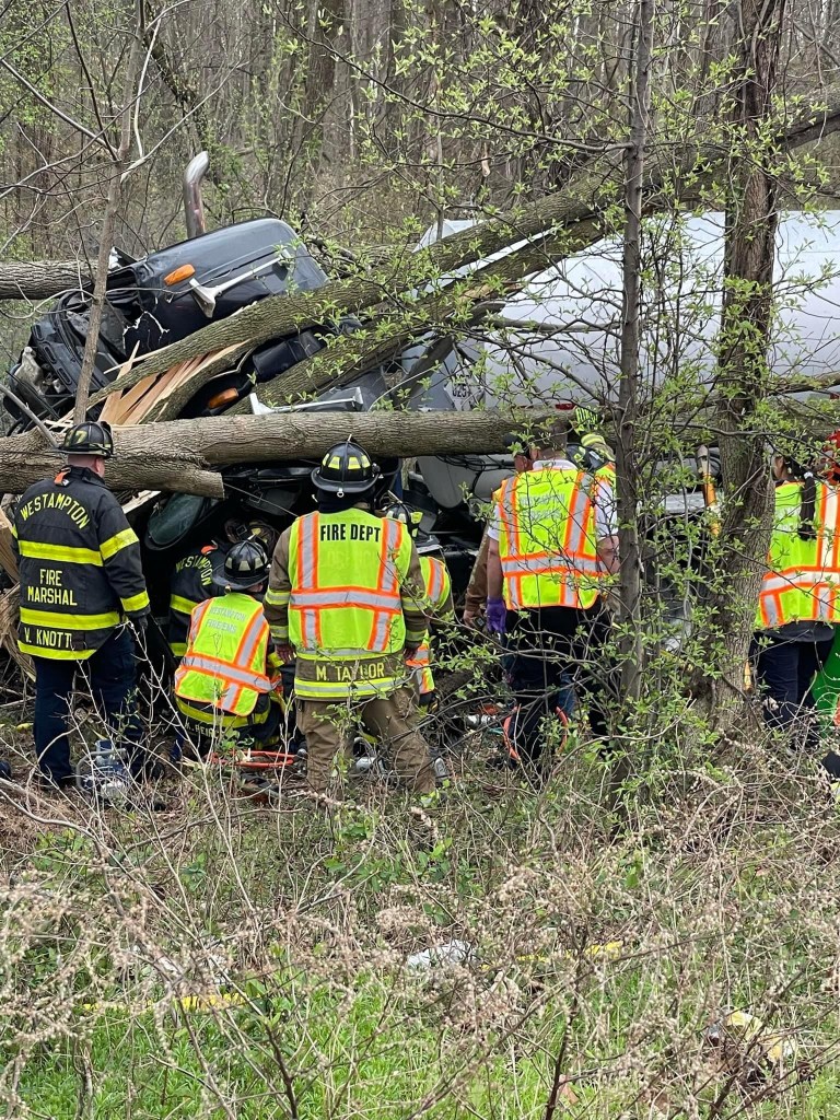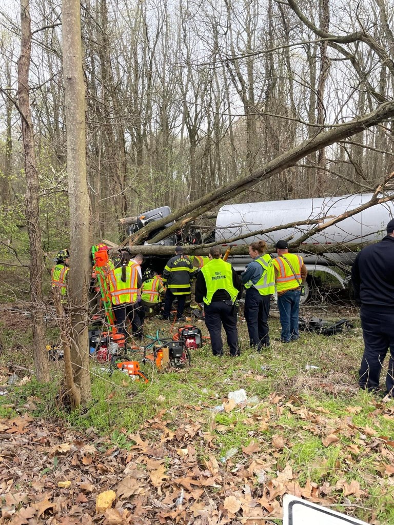 Last evening Florence Township Rescue 4011 was dispatched to route 295 north bound for a MVA. Report was given of a fuel truck off into the woods with victim trapped and truck on fire. Battalion Chief Miller arrived to find NJSP applying dry chemical extinguisher to engine fire and driver was heavily trapped within the dislodged cab. With the help of Rescue 3018 2722 3318 it was a joint effort in rescuing the driver where BLS and ALS treated and patient was flown to a triage center. Engine 3311 provided manpower, as well. Thanks to 2781, 9094 and medic 35.