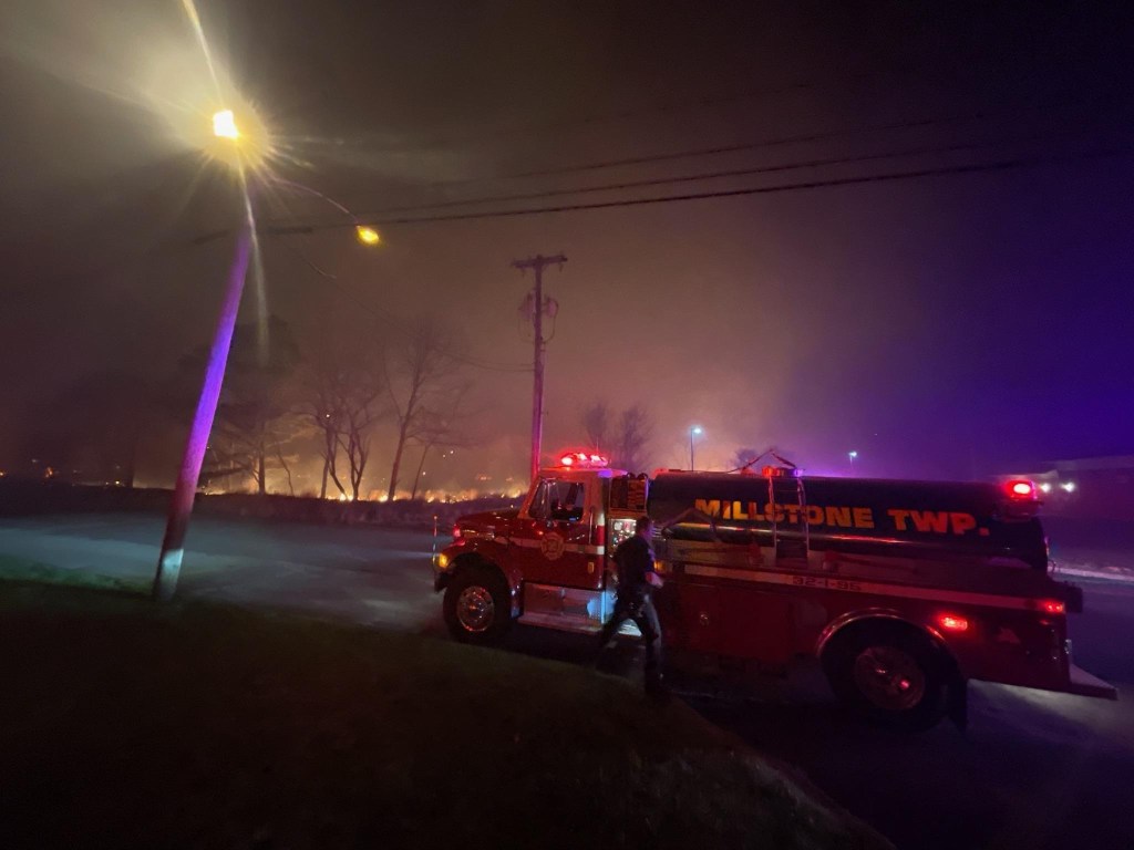MILLSTONE Fire Department shared the following: Last night Tanker 32-95 was dispatched to Jackson Twp to provide regional coverage while many Jackson units were operating at a large wildfire in Manchester Twp. 32-95 was later reassigned to part of a structural protection task force and assigned Lakehurst Borough with Jackson units where they operated throughout the night to provide protection for structures that were in danger from the wildfire that had grown.