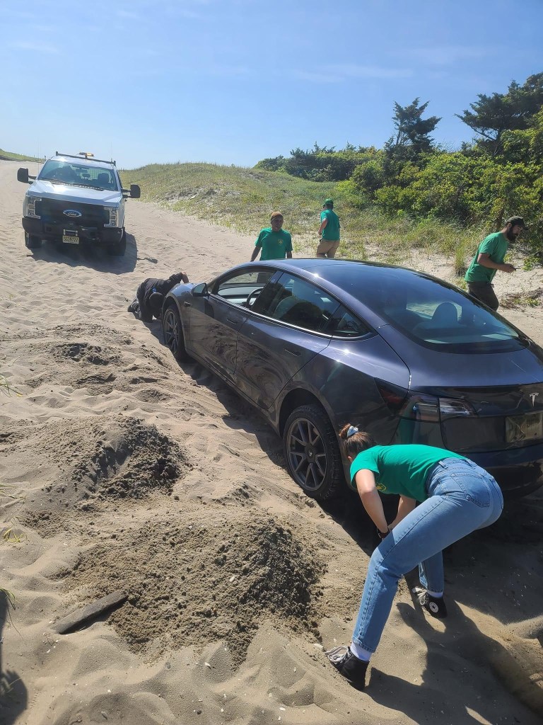 ISLAND BEACH STATE PARK: Some dumb ass decided it would be a great idea to drive his Tesla on the beach. “I saw sand and I said aye baby let’s take da Tesla on the beach. Hahahaha fuk it yolo and the shit stopped halfway through! Who would have thought you couldn’t drive a Tesla on the beach? Who knew!”
