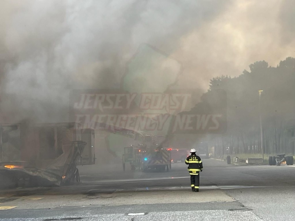 Reports are one trailer was filled with hazardous materials. Ammunition is shooting out of one of the trailers.