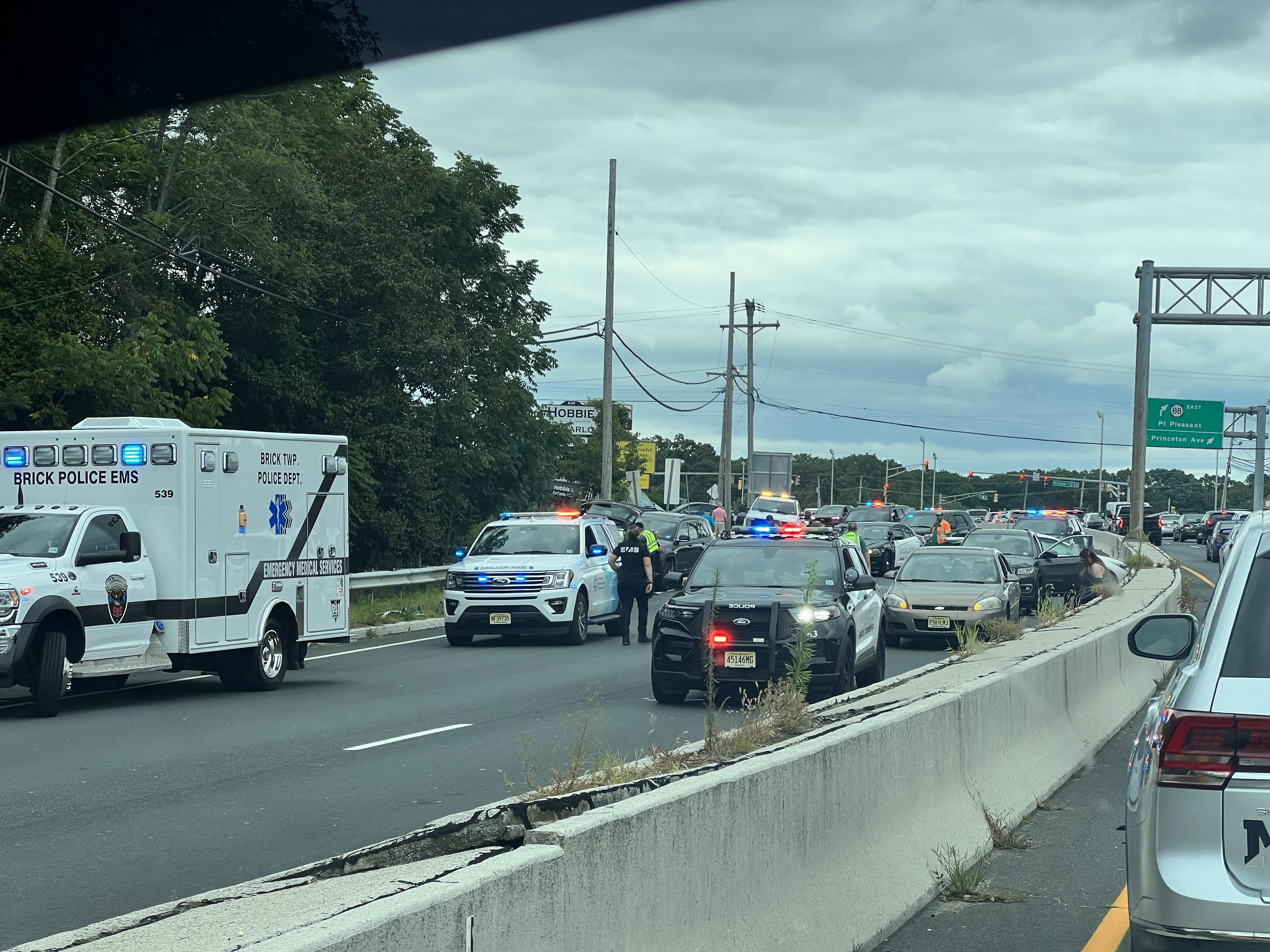 BRICK: Avoid Route 70 West across from the Rainbow Diner due to a serious crash with injuries. Numerous vehicles are involved. Medics are on scene. The collision is causing a traffic nightmare for miles on 70, 88, and Princeton Ave.