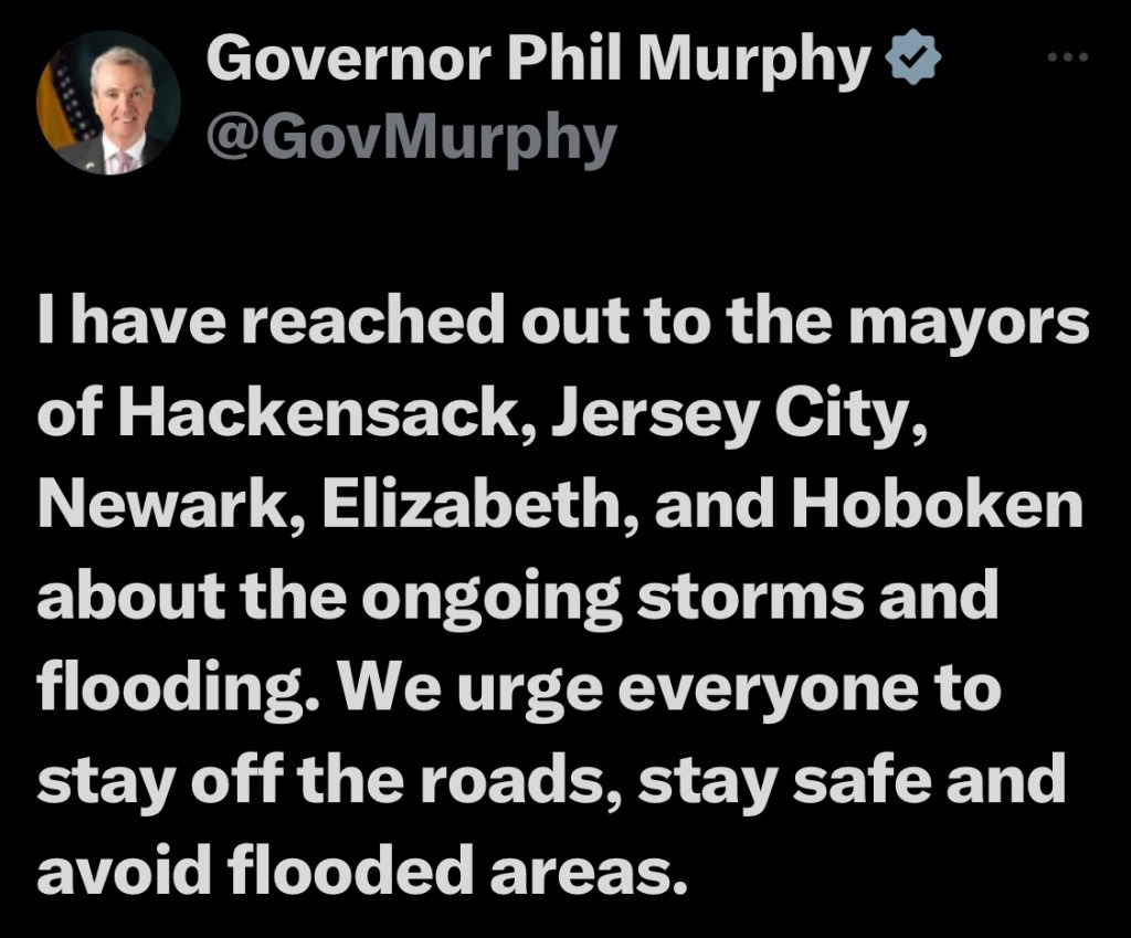 Numerous homes, and businesses are underwater this afternoon in Asbury Park, Jersey City, Hoboken, Newark, and Elizabeth. The National Weather Service has issued a flood warning throughout the state as torrential downpours come through the area. Asbury Park is underwater near Lake Ave. Flood waters are expected to continue to rise throughout the evening. Avoid the area as numerous people are stuck, and roads are closed.