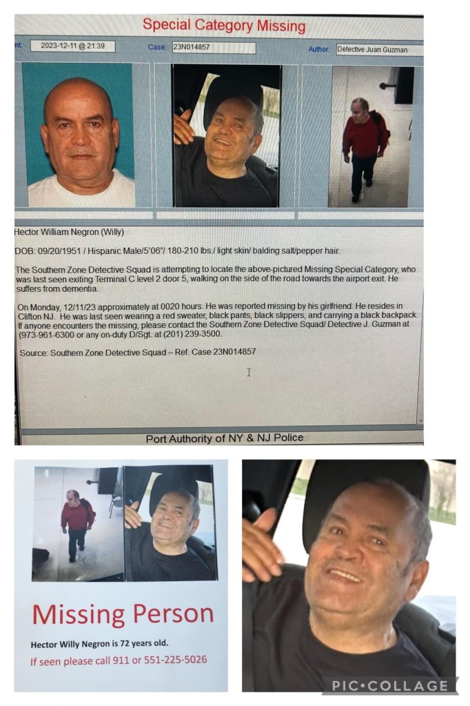 “My Dad is still missing. He arrived at EWR (Newark) Sunday Dec. 10th close to midnight on flight 2162 from United Airlines. He has no phone and no ID as he lost those items. He suffers from Dementia and was supposed to be escorted out the gate. He was wearing a red sweatshirt and dark grey sweat pants. He had a small black backpack with medication and other personal belongings. No cash on him. He needs medical assistance. If you can continue to share hopefully someone can locate him.”
